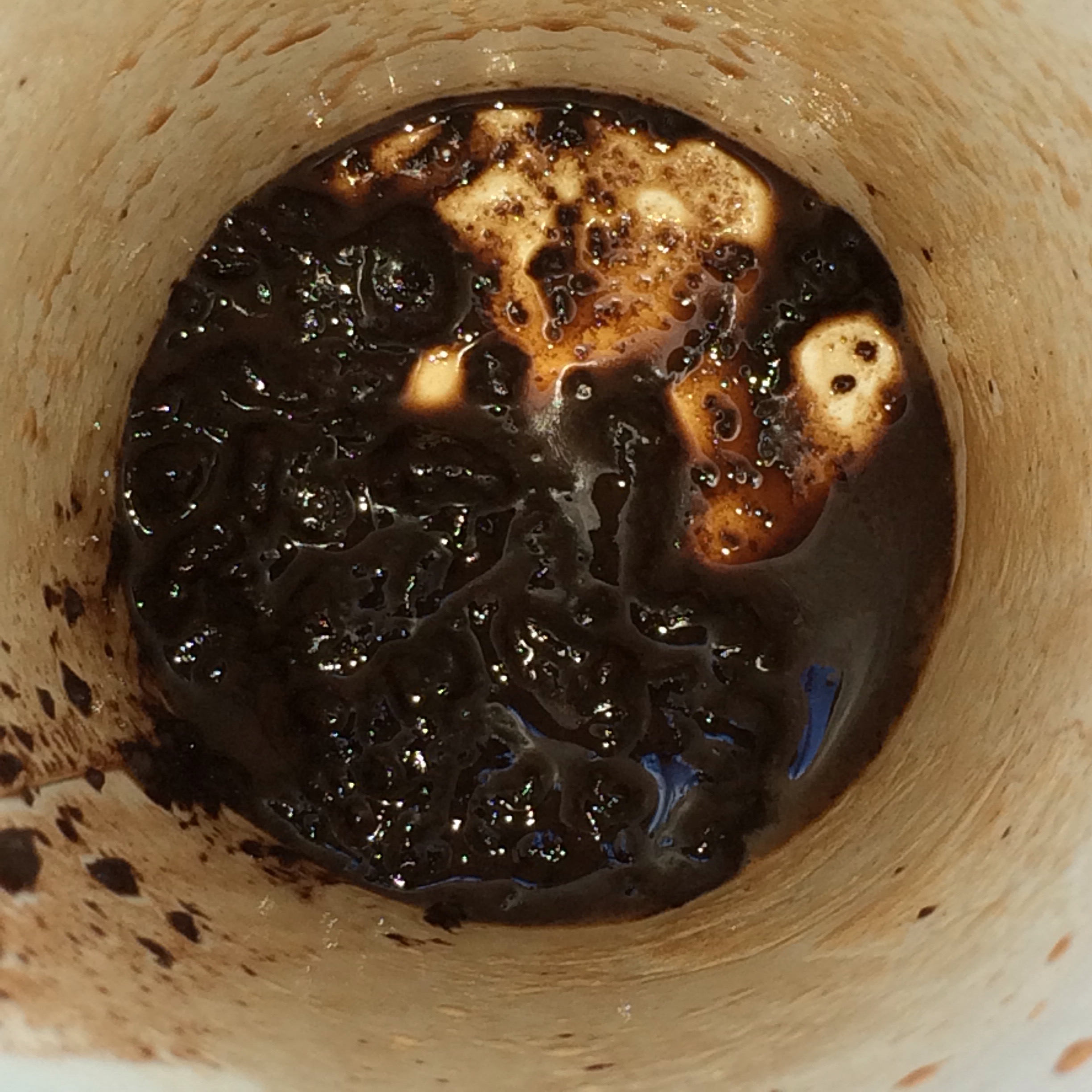 Once the whipped was gone, however, the rest of the drink tasted just like a regular mocha. I was expecting much more chocolate flavor in the actual drink. I couldn’t figure out why until I reached the last few sips, which were basically chunks of half-melted chocolate chips. (See the pic on the right.) Then I realized that adding the chocolate chips to the espresso-chocolate-syrup mixture made it hard to mix completely. I decided to try again a day later, but encountered the same problem. Here is the weird thing. Despite my frustrations with the chocolate chips not being mixed well and the actual drink tasting like a regular mocha, I am finding myself craving another one of these. I think it’s the chocolate whipped cream with the chocolate drizzle.
