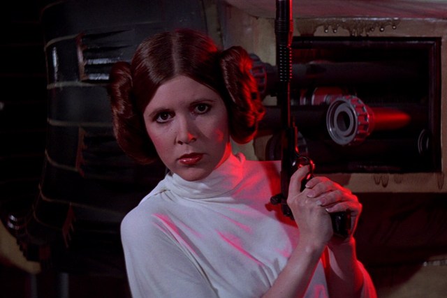 While I give most of the credit to George Lucas for creating the character and the storyline, I must also give Carrie Fisher credit for her portrayal of Leia. She made Leia feel real. She made Leia’s accomplishments seem normal. She yelled things like “Into the garbage chute, flyboy!” and “Will someone get this big, walking carpet out of my way?” and made us all think she was awesome. Very few actresses could have pulled that off, yet she did it with grace, dignity, and a blaster that fired red killer lasers.