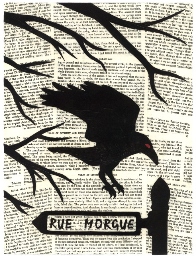 “Rue Morgue” – Multimedia collage on watercolor paper